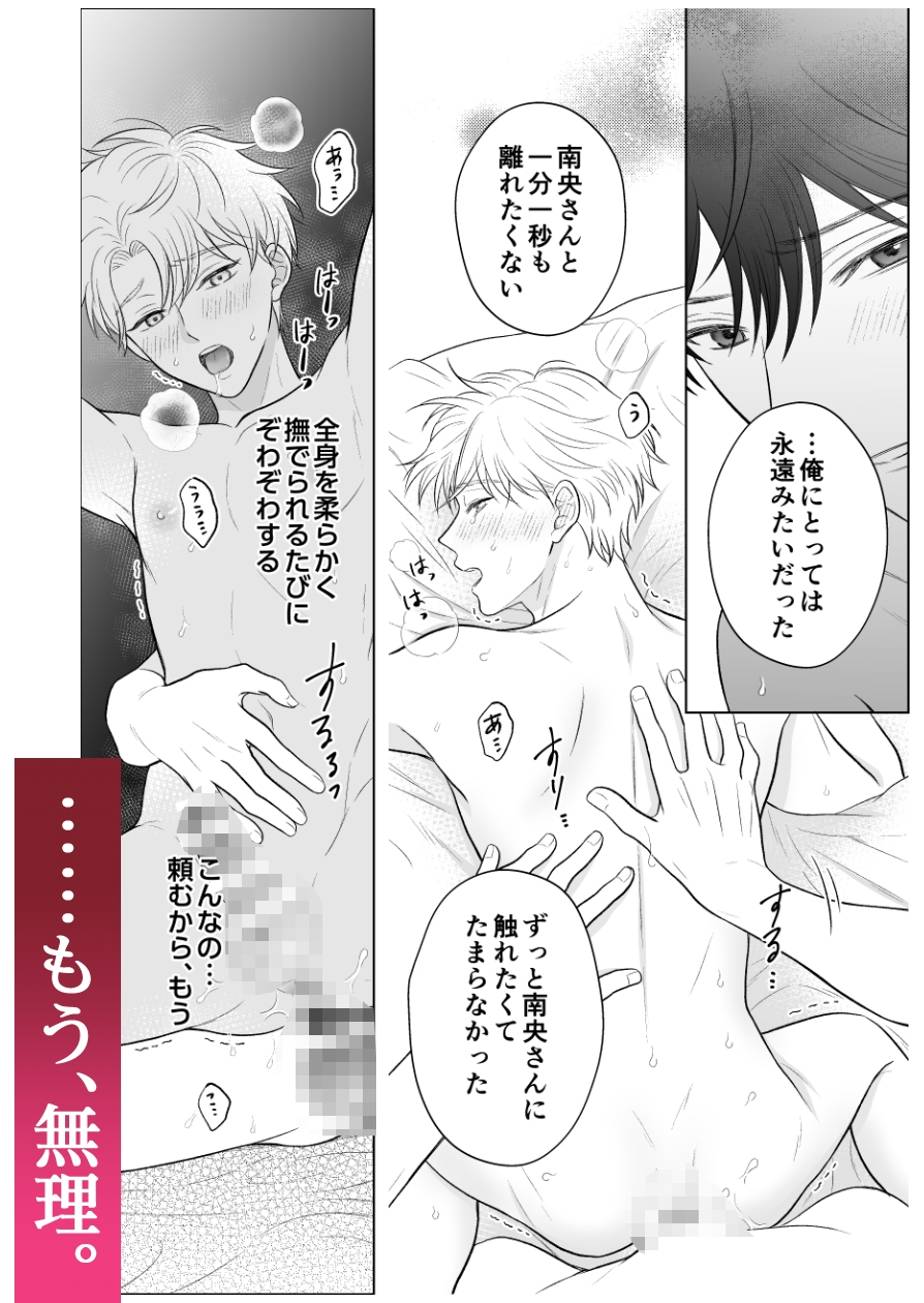 【愛が重すぎ&尽くし系年下大学生×サラリーマン】の溺愛同居BL 「もっと、ダメにしてあげる」商業番外編です。 本編未読の方でもお楽しみいただける内容になっております。 ◆あらすじ 三日間の出張で離れ離れだった南央也と春斗。 再会後は春斗のスペシャルマッサージから、 そのまま止まらない溺愛いちゃいちゃ…♡ 甘さ増し増しでお届けします⟡ —– ページ数:41P(表紙など事務ページ含む) —– 作者:りのえ https://x.com/rinoe_k 表紙デザイン:kina https://x.com/ten_ziu …